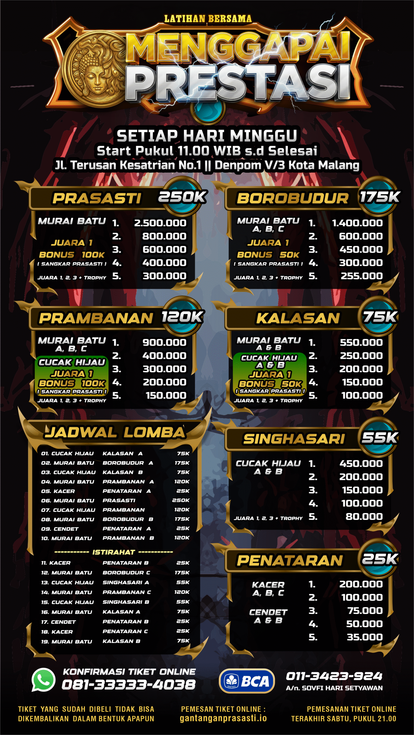 Senang sekali mengumumkan peluncuran platform baru di Gantangan Prasasti yang didedikasikan untuk memenuhi aspirasi para penggemar burung di Malang Raya dan seluruh Jawa Timur! Fokus kami adalah memberikan juri berkualitas tinggi, area gantangan yang nyaman, dan fasilitas berkualitas terbaik. Kita terapkan standar Gantangan yang terbaik bagi Kicau Mania di Kota Malang